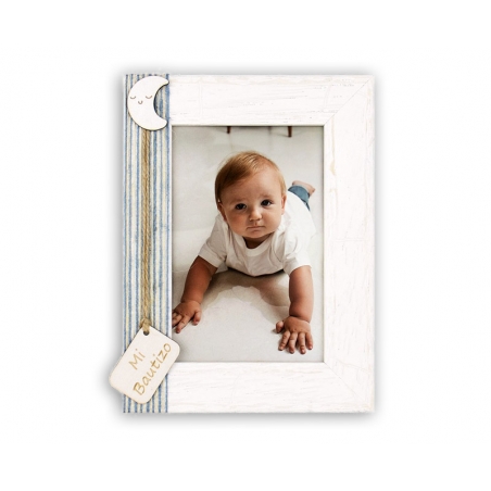 Marco de madera decorado con yute para bautizo. 10x15 cm. Fotografía incluida en el precio si compras 5 ó más unidades. Envíanos tu archivo si es tu caso.