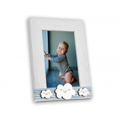Marco de madera decorado para bautizo. Tamaño de fotografía: 10x15 cm (vertical). Fotografía incluida en el precio si compras 5 ó más unidades. Envíanos tu archivo si es tu caso.