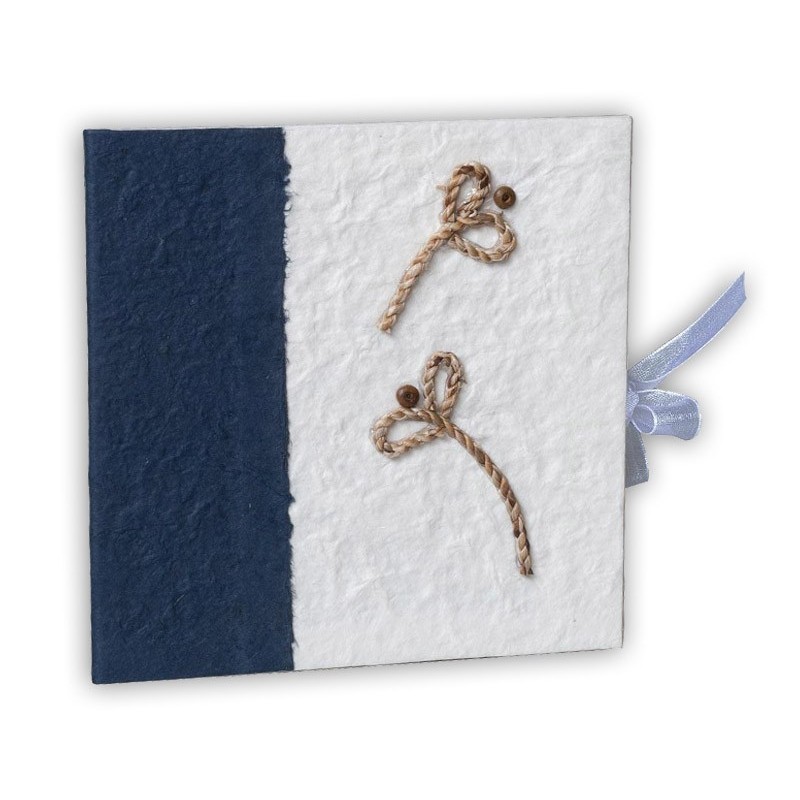 Recordatorio de soporte y tapas rígidas. Papel natural. Medidas: 15x15 cm. Sobre incluido. Artículo descatalogado. Sólo unidades disponibles en tienda.