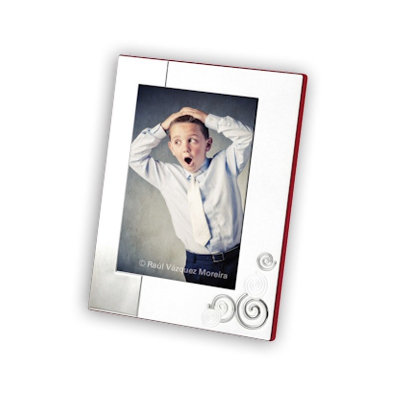 Marco plateado y blanco de Comunión con trasera de terciopelo. Tamaño de fotografía: 9x13 cm. Fotografía incluida en el precio si compras 5 o más unidades. Envíanos tu archivo si es tu caso.